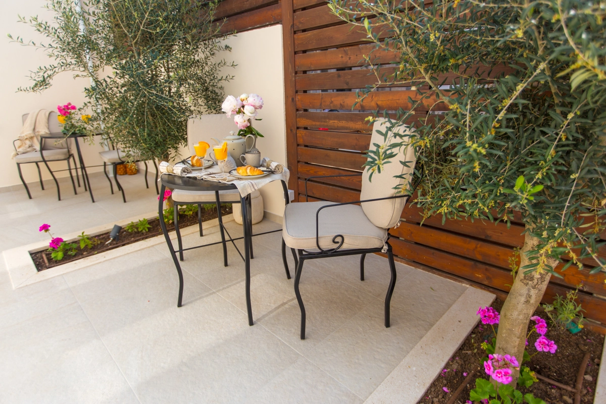 A spacious shared terrace fitted with sun beds and parasols as well as shared swimming pool are at your disposal, which makes this place ideal for a nice and relaxing family or friends vacation.