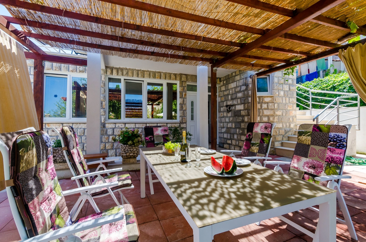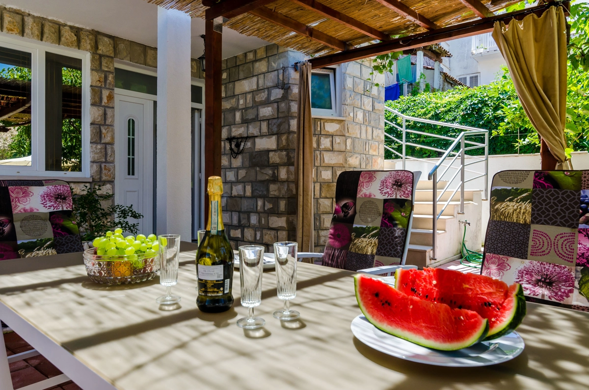 Property offer four self-catering accommodation units with shared garden and furnished terrace. BBQ facilities are at guest's disposal. Welcome drink is included.