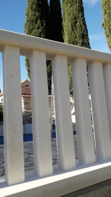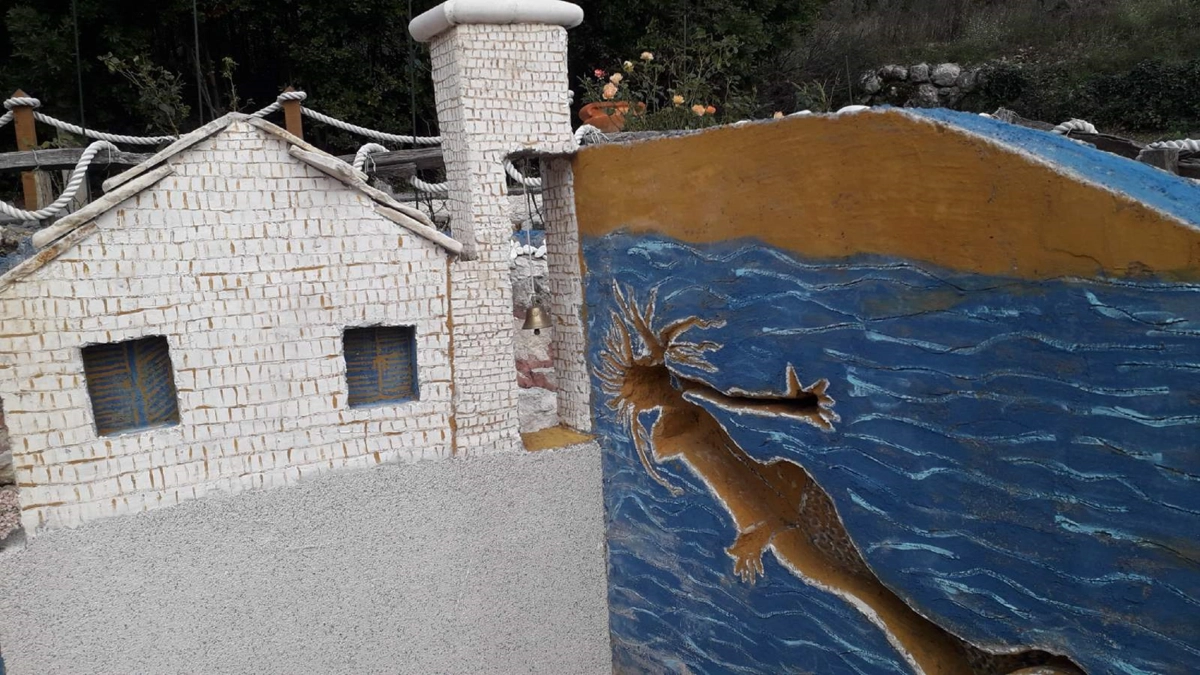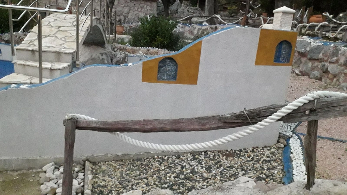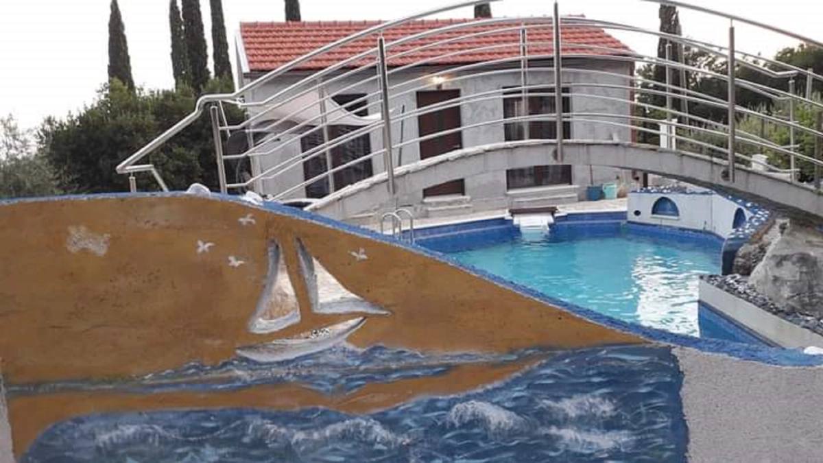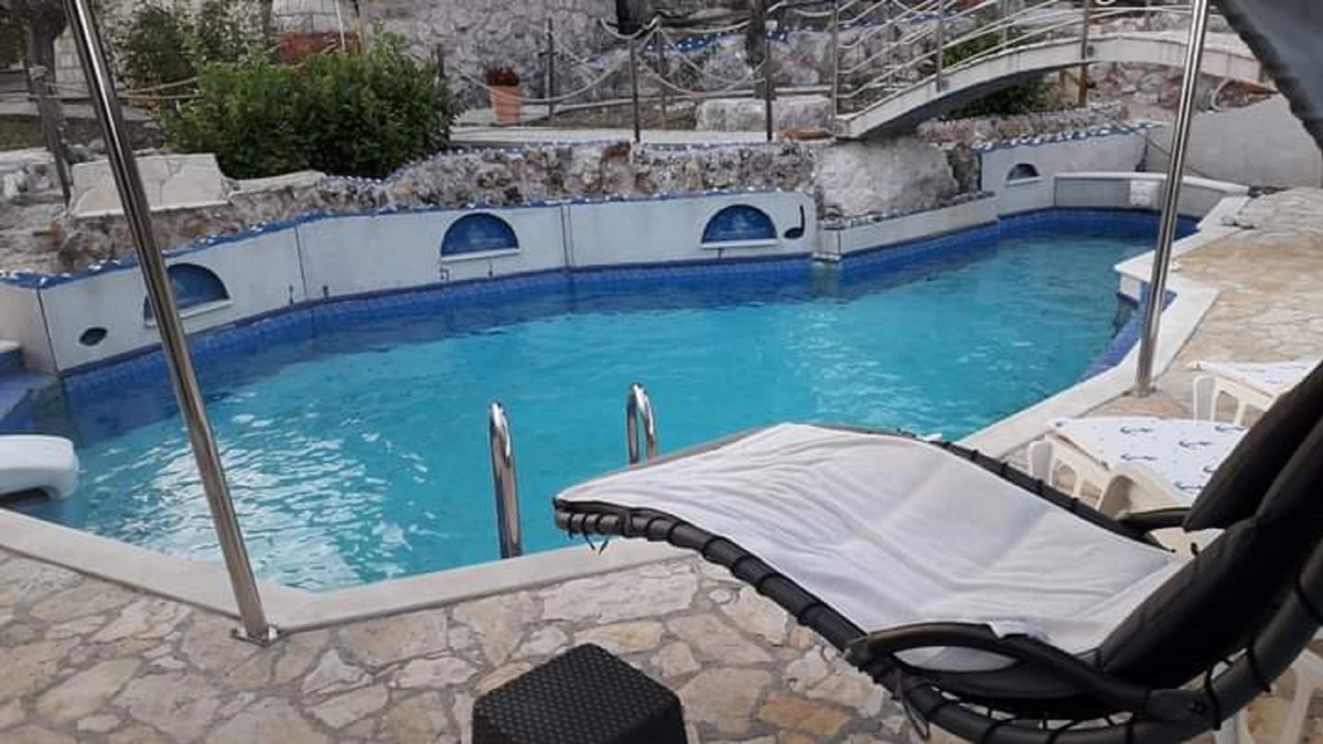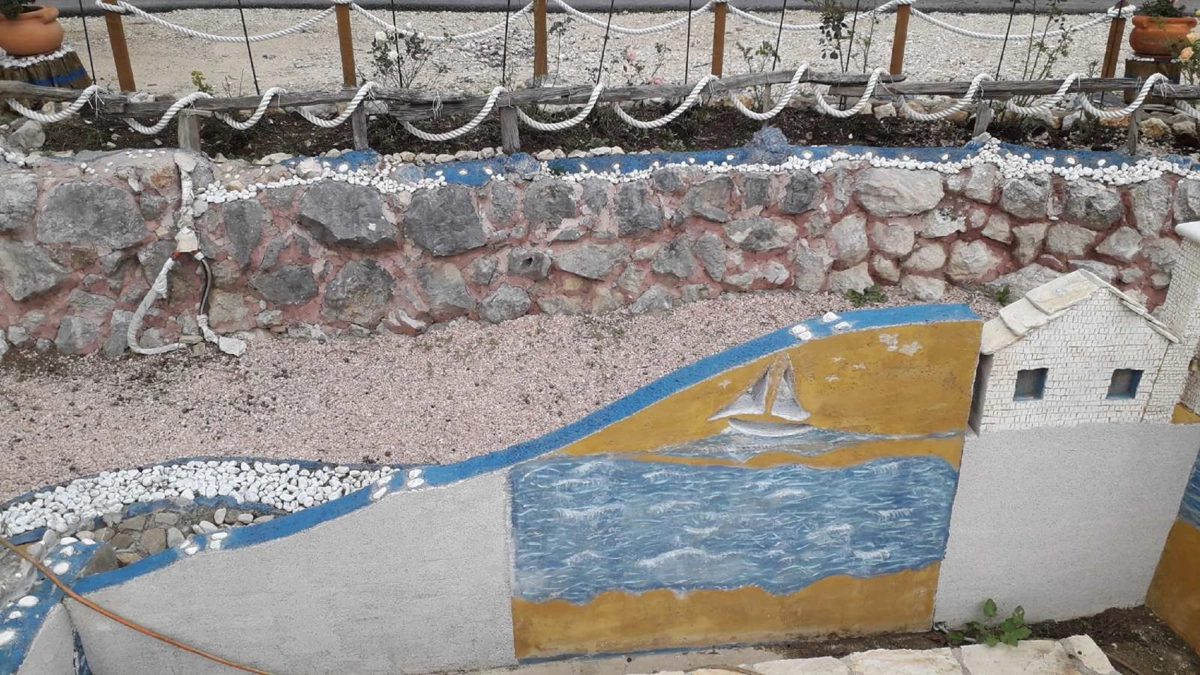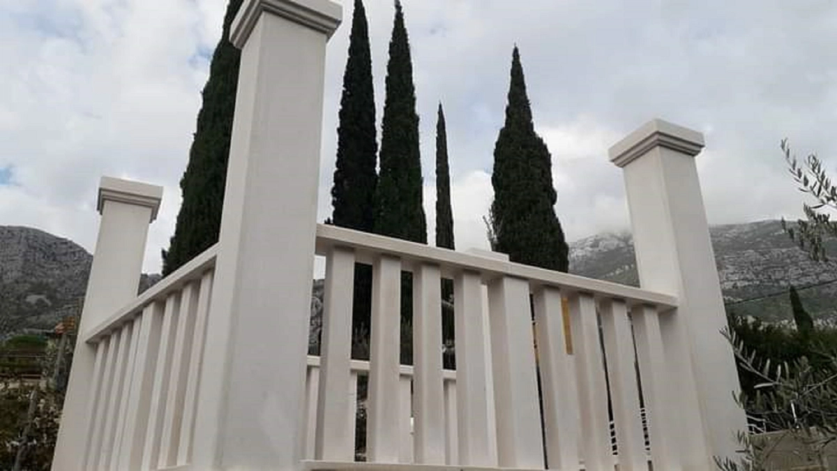Villa Mermaid ,named after the owner and composer of the Opera of the same name, had special decorations of sea grass on the walls and many special details as part of the landscape architecture. As in a fairy tale, tiny houses reminiscent of narrow Dalmatian streets were built around the property. Like waves and an engraved Siren are woven into the decorative concrete, as well as a beautiful bridge over a large pool that has the shape of a teardrop. Seven large cypresses towered around as guardians. A seating area for sitting on summer nights was hand-crafted from high-quality white stone. And the olive trees give the charm and atmosphere of the Mediterranean and silence in in touched nature. Enjoy this beauty.