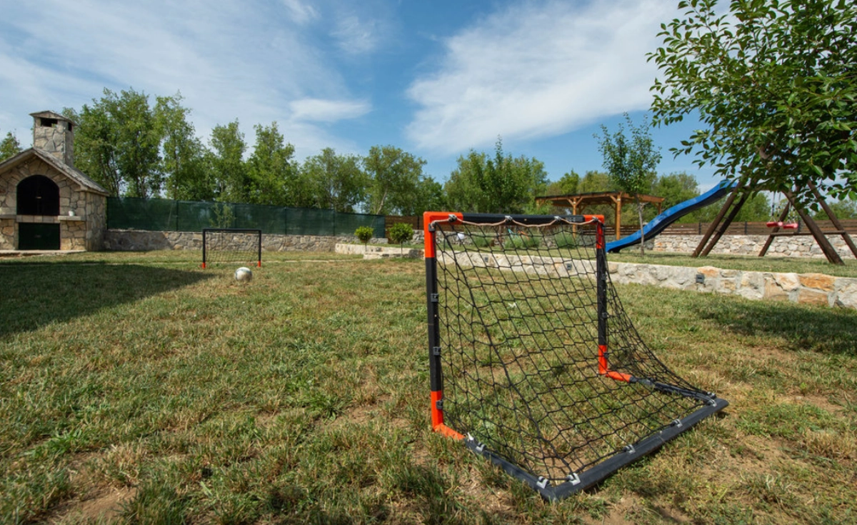 Spacious furnished sun terrace fitted with sunbeds and parasols, private seasonal outdoor swimming pool, children's play ground and play equipment, BBQ facilities as well as outdoor dining and sitting area area are at your disposal, which makes it a perfect spot for a nice and relaxing family or friends vacation.