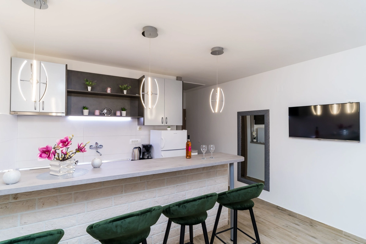 This location is perfect for guests who love to enjoy the sun and the sea, being close to the touristic center, but far enough to avoid the crowds and keep their peace and privacy. Sea is only 200 meters away, market and a bus station can be found in 300 meters range. Guests can enjoy the local cuisine at the restaurant 250 meters from the property. There is also a small supermarket 250 m. Cavtat, lovely place with beautiful promenade and beaches is just 4 kilometers away and Old Town, historical and cultural center of Dubrovnik with many entertainment facilities is just 10 kilometers away.