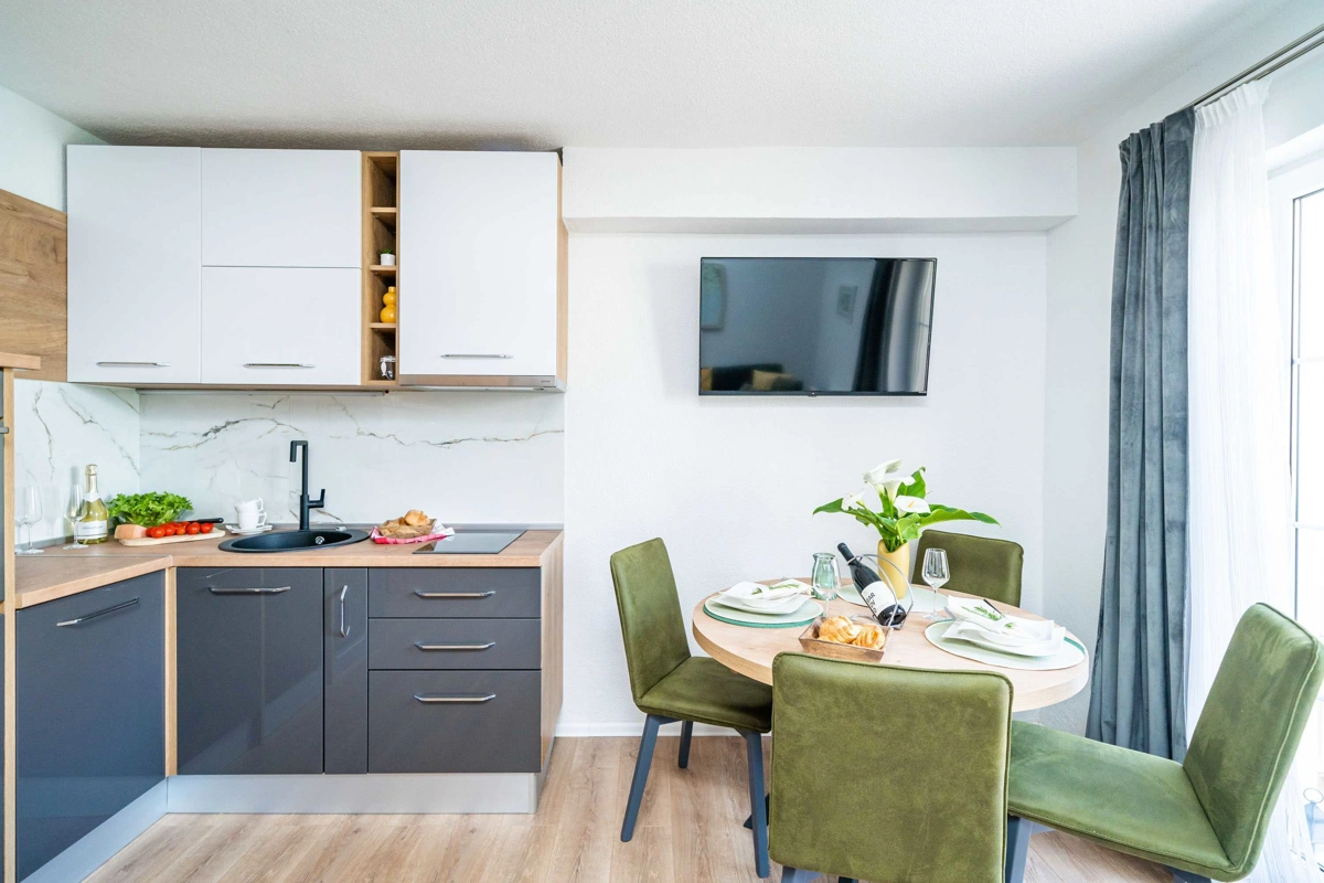 Apartments are equipped with kitchen and dinning area, living room and private bathroom. Safe, ironing facilities and hair dryer are also on guests disposal.