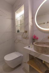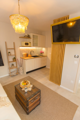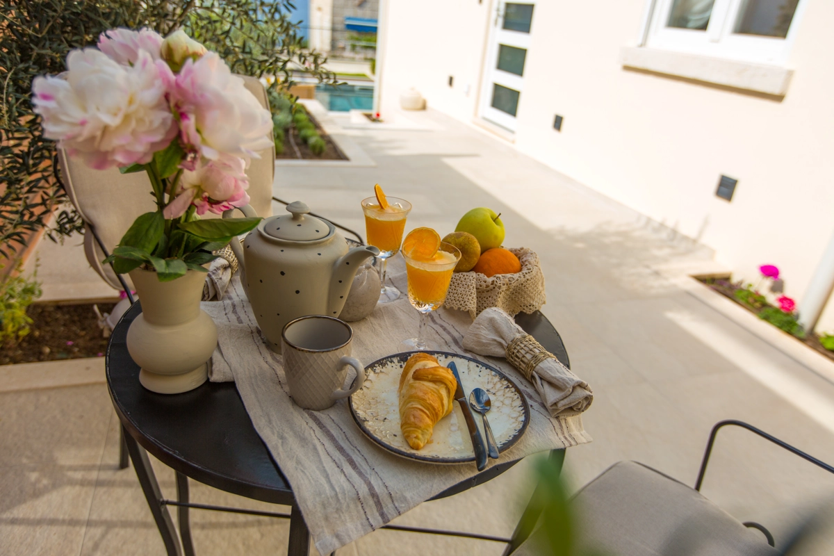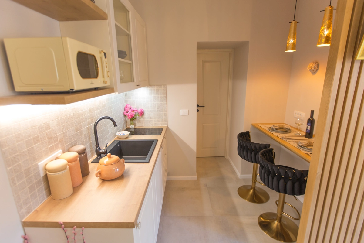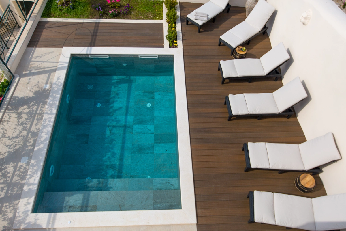 A spacious shared terrace fitted with sun beds and parasols as well as shared swimming pool are at your disposal, which makes this place ideal for a nice and relaxing family or friends vacation.