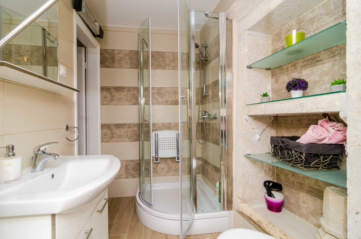 Holiday Home Tezoro Royal is self catering accommodation located inside Dubrovnik Old Town and can accommodate up to 6 people. Property features living room with seating area and flat screen cable TV. Free WiFi and air conditioning are provided. Kitchen is fully equipped with stove, oven, refrigerator, kettle, microwave, coffee maker, dishwasher, toaster and dining area. Property features 2 bathrooms with shower, toilet, hair dryer, soap and toilet paper. Washing machine, linen, towels and ironing facilities are provided.