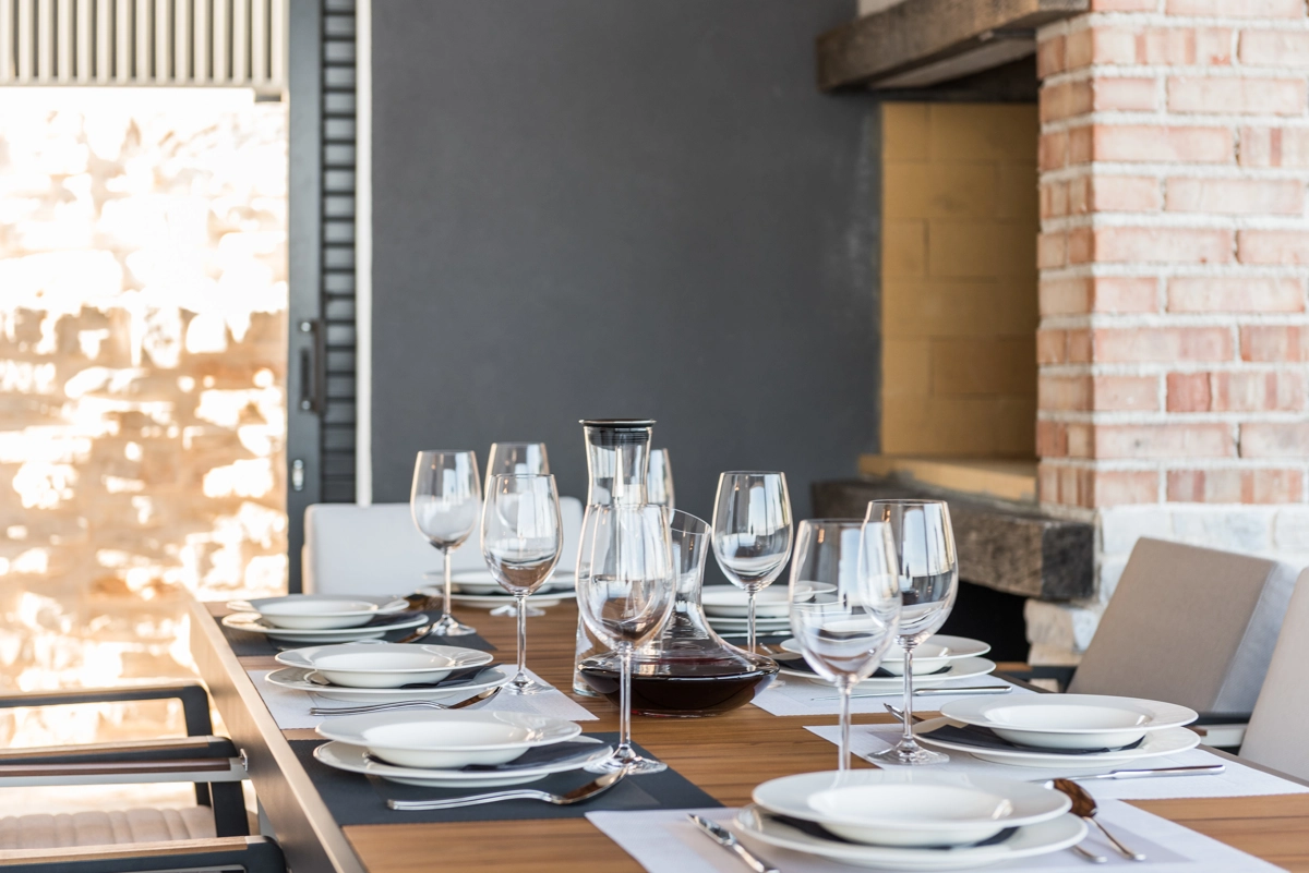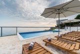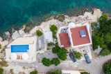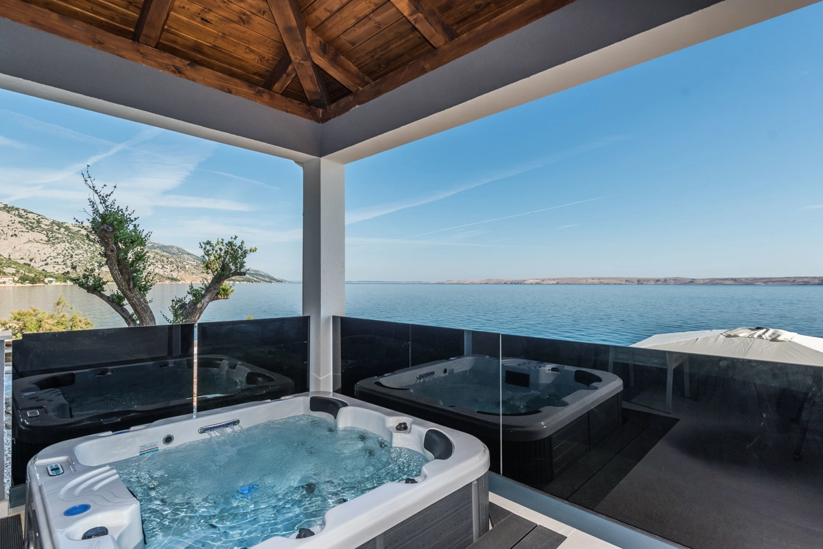 Luxury Villa Solis has a private covered terrace with BBQ and a jacuzzi where our guests can relax and enjoy warm summer nights. Nearby is the beach where guests can swim in the crystal clear sea. There is a sensational beach right in front of the house. Sun loungers are available for our guests.