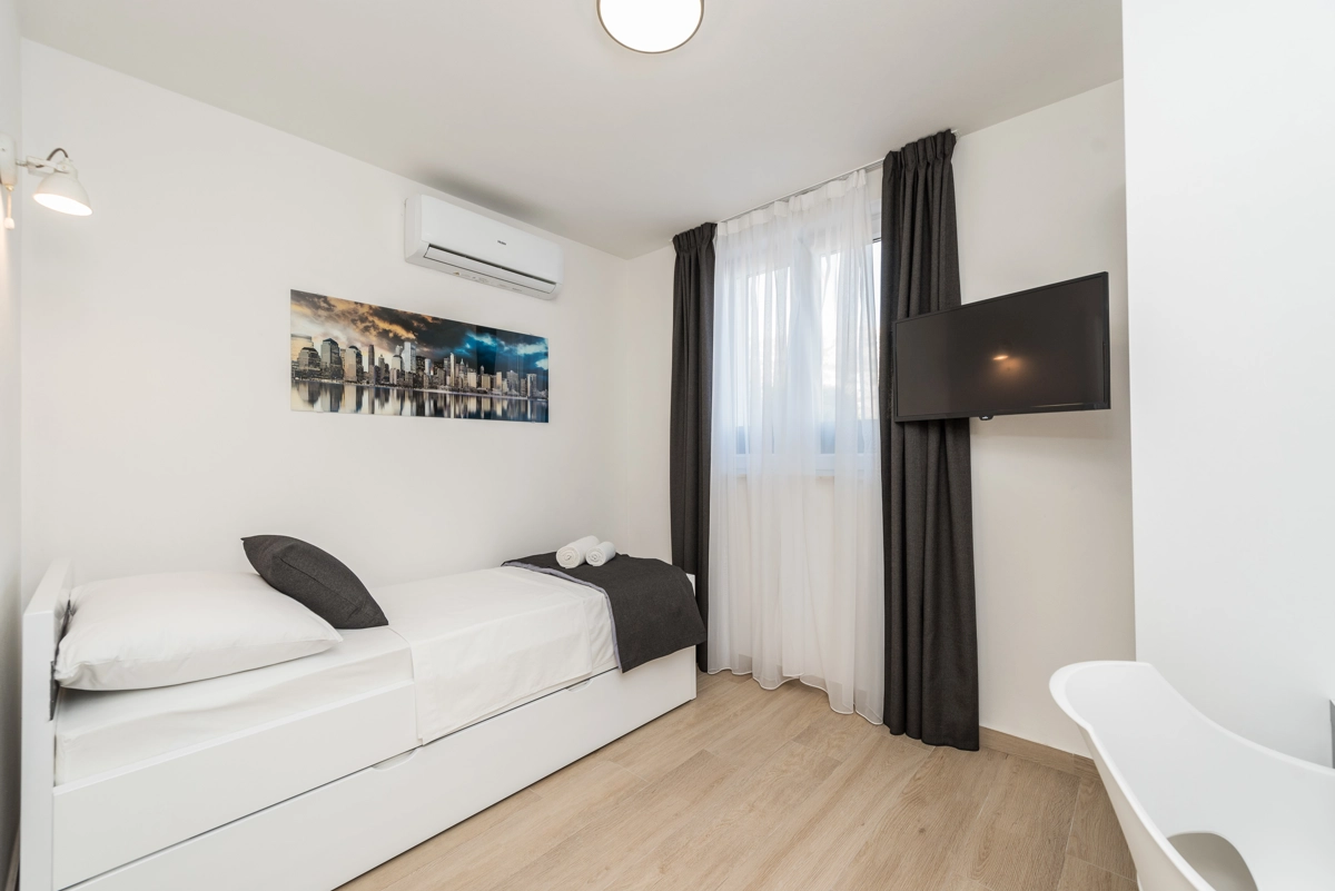 Karlobag is a seaside municipality on the Adriatic coast in Croatia, located underneath the Velebit mountains overlooking the island of Pag. It is a wonderful combination of the Mediterranean and the continents, the crystal clear sea, and the most beautiful Croatian mountain that have only a few minutes drives. If you enjoy a peaceful vacation far from the city crowds, Luxury Villa Solis is a perfect spot for you. Beach is only 3 m away. The closest market is 5 km away from the property, while restaurants and bars are 8 km away. Don't miss out on visiting Nacional Park Paklenica which is located only 38 km away.