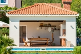 Villa offers an outdoor kitchen with BBQ and dining area, Finnish sauna, solar shower and an outdoor swimming pool, basketball/football/tennis court, tennis table and children playground are just some of the things that guests can use. Gym for an outdoor and indoor training includes a variety of exercise machines for cardio, abs etc. Spacious furnished terrace with seasonal private pool is at guests disposal.